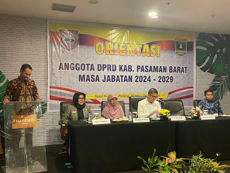 PADANG- Sebanyak 40 anggota DPRD Pasaman Barat masa jabatan 2024-2029 mengikuti orientasi yang digelar mulai 30 November hingga 4 Desember 2024 di Hotel Truntum, Kota Padang.