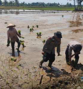 Dalam kegiatan tersebut Bhabinkamtibmas membantu pembuatan lajur penanaman padi untuk efesiensi jarak tanam supaya hasil maksimal, memberikan imbauan untuk menjaga kualitas air serta antsipasi hama tikus dan wereng.