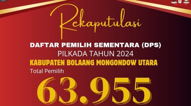 Berdasarkan data yang dirilis KPU Bolmut  pada Senin (19/8/2024), total jumlah pemilih yang terdaftar mencapai 63.955 orang.
