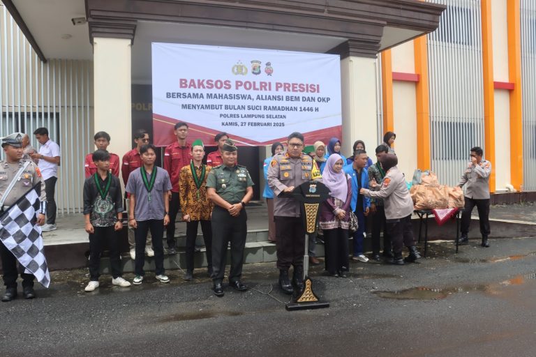 Lampung Selatan,– Polres Lampung Selatan bersama mahasiswa, Aliansi BEM, dan organisasi kemasyarakatan pemuda (OKP) menggelar Bakti Sosial (Baksos) Polri Presisi bagi masyarakat terdampak bencana alam di Lampung Selatan, Kamis (27/2/2025).